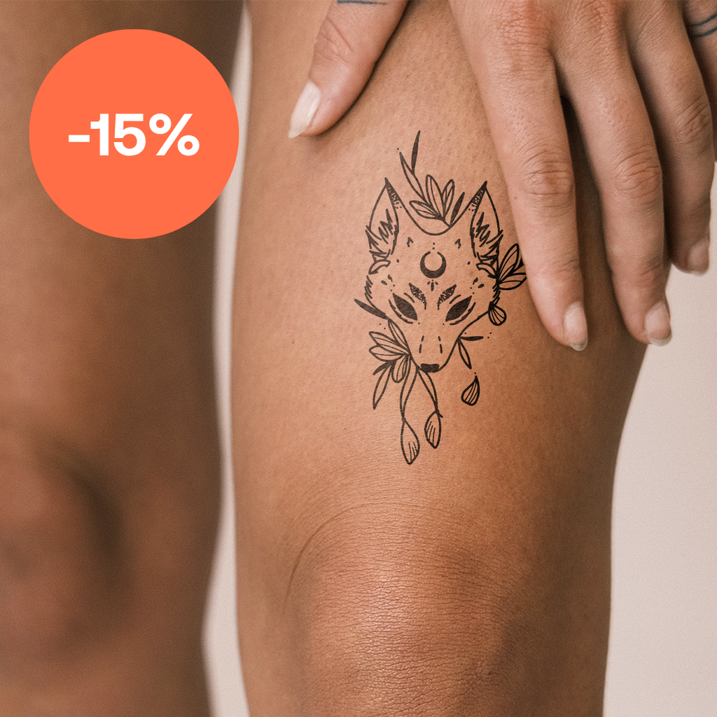 De Bloemen Vos - Een tijdelijke tatoeage vol betekenis en inspiratie! De Bloemen Vos is meer dan alleen een tatoeage - het is een symbool van vrijheid, kracht en persoonlijke groei. Het verhaal achter dit motief is diepgaand en fascinerend. De vos staat traditioneel voor slimheid en list, terwijl bloemen staan voor schoonheid en verandering. Samen symboliseren ze de wens naar innerlijke groei en het vermogen om zich aan te passen en te bloeien in elke situatie. Of je nu een persoonlijke verandering doormaakt of gewoon je innerlijke kracht wilt benadrukken, de Bloemen Vos is de perfecte tatoeage om je eraan te herinneren dat je elke uitdaging aankan. De tatoeage Bloemen Vos is perfect geschikt voor verschillende lichaamsdelen. Voor grotere oppervlakken zoals de borst of de rug kan het ontwerp zijn volle pracht tonen en een echte blikvanger zijn. Als je liever iets subtieler wilt, is het gebied achter het oor of de ribben ideaal. Waar je het ook plaatst, de Bloemen Vos zal zeker alle aandacht trekken. Met de tatoeage Bloemen Vos kun je op unieke wijze je persoonlijke stijl aanvullen. Combineer het met een casual outfit voor de perfecte streetstyle-look of kies een elegant jurk voor een speciale gelegenheid. De tatoeage past bij elke gelegenheid en geeft je look een individuele touch. De tatoeage Bloemen Vos is geschikt voor iedereen die op een onconventionele manier zijn persoonlijkheid en stijl wil uitdrukken. Het is perfect voor jonge mensen die kiezen voor tijdelijke tatoeages of gewoon een tatoeage willen uitproberen. Of je nu een festival bezoekt, een verjaardagsfeest hebt of een stedentrip plant, de Bloemen Vos is het ideale accessoire om je look compleet te maken. Laat de wereld je innerlijke kracht en individualiteit zien met deze fascinerende tijdelijke tatoeage. Ontdek de magie van de Bloemen Vos en bestel vandaag nog jouw tijdelijke tatoeage van Inkster. Met een duurzaamheid tot wel twee weken biedt het je de mogelijkheid om je stijl te testen en je creativiteit de vrije loop te laten. Laat je inspireren door de symbolische betekenis en veelzijdigheid van deze tatoeage en vind jouw persoonlijke expressie met de Bloemen Vos van Inkster.