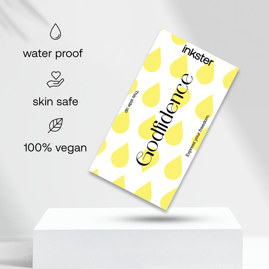 De ‘Godfidence’ Tatoeage en Ligne Fine is meer dan alleen een ontwerp – het is een gedurfde uitspraak van innerlijke kracht, onwankelbaar geloof en de kracht van zelfvertrouwen. Gegrond in het geloof dat alles mogelijk is met vertrouwen in God en in jezelf, symboliseert deze tatoeage empowerment, veerkracht en een diepe verbinding met spiritualiteit. Het woord "Godfidence" combineert twee krachtige concepten: "God" en "self-confidence", en herinnert ons eraan dat we met Gods leiding elke uitdaging met onwankelbaar zelfvertrouwen kunnen aangaan. Of het nu dient als een persoonlijke bevestiging, een bron van kracht in moeilijke tijden of een constante herinnering aan goddelijke kracht – de ‘Godfidence’ Tatoeage en Ligne Fine is een inspirerende en betekenisvolle keuze. Plaatsing van de ‘Godfidence’ Tatoeage en Ligne Fine – Reflecteer je innerlijke kracht De plaatsing van de ‘Godfidence’ Tatoeage en Ligne Fine hangt af van je persoonlijke stijl en de uitspraak die je wilt maken. Het is perfect voor grotere gebieden zoals de onderarm, borst of rug, zodat je de krachtige boodschap volledig tot zijn recht laat komen. Als je liever een subtielere benadering hebt, zijn plaatsen zoals de pols, enkel of achter het oor ideale keuzes. Deze tatoeage kan ook op een discreet gebied worden geplaatst, waardoor het een persoonlijk symbool van je geloof en zelfvertrouwen wordt dat alleen jij kunt zien. Veelzijdige stijl – Een statement voor elke gelegenheid De ‘Godfidence’ Tatoeage en Ligne Fine past bij elke persoonlijke stijl en kan gedragen worden bij verschillende gelegenheden. Of je nu een minimalistische, moderne look draagt met een eenvoudig T-shirt en jeans, of iets eleganters zoals een maatpak of een mooie jurk, deze tatoeage voegt een krachtig accent toe aan je uitstraling. Het is perfect voor die speciale momenten wanneer je een herinnering nodig hebt aan je kracht en geloof – of je nu op vakantie bent of bij een betekenisvol evenement waar het dient als herinnering aan je innerlijke kracht en goddelijke verbinding. Voor degenen die geloven in de kracht van geloof en zelfvertrouwen De ‘Godfidence’ Tatoeage en Ligne Fine is perfect voor iedereen die de kracht omarmt die voortkomt uit geloof en zelfvertrouwen. Het is een ideale keuze voor mensen die sterk geloven in hun eigen capaciteiten en hun leven willen leiden, geleid door vertrouwen. Of je nu net begint aan je spirituele reis, of al lang met geloof wandelt, deze tatoeage is een perfecte herinnering dat met God en zelfvertrouwen alles mogelijk is. Ontdek de kracht van geloof en zelfvertrouwen – met de ‘Godfidence’ Tatoeage en Ligne Fine Laat de ‘Godfidence’ Tatoeage en Ligne Fine een symbool zijn van jouw reis, die je elke dag herinnert aan het feit dat geloof en zelfvertrouwen je grootste krachten zijn. Het is een tijdelijke tatoeage die je innerlijke kracht en verbinding met een hogere macht viert. Draag hem met trots als getuigenis van jouw onwankelbare zelfvertrouwen en geloof. Met de ‘Godfidence’ Tatoeage en Ligne Fine van Inkster kun je de kracht van God en zelfvertrouwen overal met je meedragen. Bestel nu jouw tijdelijke Inkster-tatoeage en ervaar de diepe betekenis achter dit bijzondere ontwerp.