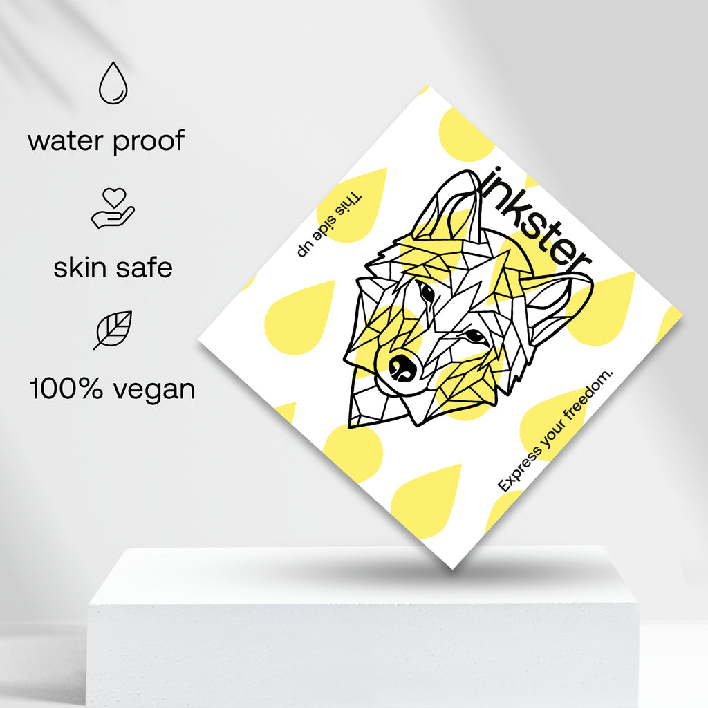 De grote geometrische wolf tatoeage is meer dan alleen een eenvoudig ontwerp – het is een krachtig symbool van kracht, wijsheid en verbondenheid met de natuur. De wolf staat voor loyaliteit, intuïtie en het volgen van je innerlijke pad, terwijl de geometrische vormen symbool staan voor orde, balans en de harmonie van het universum. Deze tatoeage herinnert ons eraan dat we, net als de wolf, trouw mogen blijven aan onze instincten en onze eigen weg mogen volgen, ongeacht wat anderen zeggen. Of deze tatoeage nu een spirituele betekenis voor je heeft, geworteld is in cultuur, of jouw persoonlijke verhaal vertelt – de grote geometrische wolf tatoeage is een uniek en betekenisvol ontwerp dat diepe lagen van zelfexpressie aanraakt. Plaatsing van de grote geometrische wolf tatoeage De plaatsing van de grote geometrische wolf tatoeage hangt af van jouw voorkeur en stijl. Voor een indrukwekkende uitstraling is deze tatoeage perfect op grotere oppervlakken zoals de bovenarm, rug of het dijbeen. Daar komt het geometrische detail het beste tot zijn recht en kan het ontwerp zijn krachtige uitstraling volledig tonen. Voor een meer subtiele benadering kun je kiezen voor de pols, enkel of net achter het oor – plekken die iets intiems en persoonlijks uitstralen. Je kunt de tatoeage zelfs op een verborgen plek dragen, als krachtig symbool dat alleen voor jou zichtbaar is. Stijl en veelzijdigheid van de grote geometrische wolf tatoeage De grote geometrische wolf tatoeage is verrassend veelzijdig en past bij verschillende outfits en gelegenheden. Het is een perfecte aanvulling op een minimalistische, moderne look – denk aan een basic T-shirt met jeans – waarbij het een krachtig visueel accent toevoegt. Voor een elegantere uitstraling combineert de tatoeage prachtig met een luchtige jurk of een nette blouse. Ook bij speciale gelegenheden zoals festivals, vakanties of een avondje uit, voegt dit ontwerp een unieke en persoonlijke touch toe aan jouw stijl. Het is een flexibel accessoire dat je keer op keer kunt dragen, passend bij iedere stemming of moment. Voor wie is de grote geometrische wolf tatoeage geschikt? De grote geometrische wolf tatoeage is ideaal voor iedereen die zich wil verbinden met de oerkrachten van de natuur, of die op zoek is naar een symbool van kracht, wijsheid en onafhankelijkheid. Het spreekt mensen aan die zich aangetrokken voelen tot spirituele groei, intuïtie en de energie van dieren. Deze tatoeage is ook perfect voor mensen die (nog) geen permanente tatoeage willen, of gewoon graag experimenteren met nieuwe stijlen. Creatieve geesten, natuurliefhebbers, spirituele zoekers en stijlvolle individualisten zullen zich herkennen in dit krachtige ontwerp. Beleef kracht en balans met de grote geometrische wolf tatoeage Ontdek de diepe betekenis van de grote geometrische wolf tatoeage en maak er een onderdeel van jouw persoonlijke stijl van. Deze tijdelijke tatoeage brengt jouw band met natuur, kracht en innerlijke wijsheid tot leven. Draag hem met trots als symbool van jouw unieke reis. Met de grote geometrische wolf tatoeage van Inkster laat je elke dag zien wie je bent en waar je voor staat. Bestel nu jouw tijdelijke Inkster-tatoeage en ervaar zelf de betekenisvolle impact van dit bijzondere ontwerp.