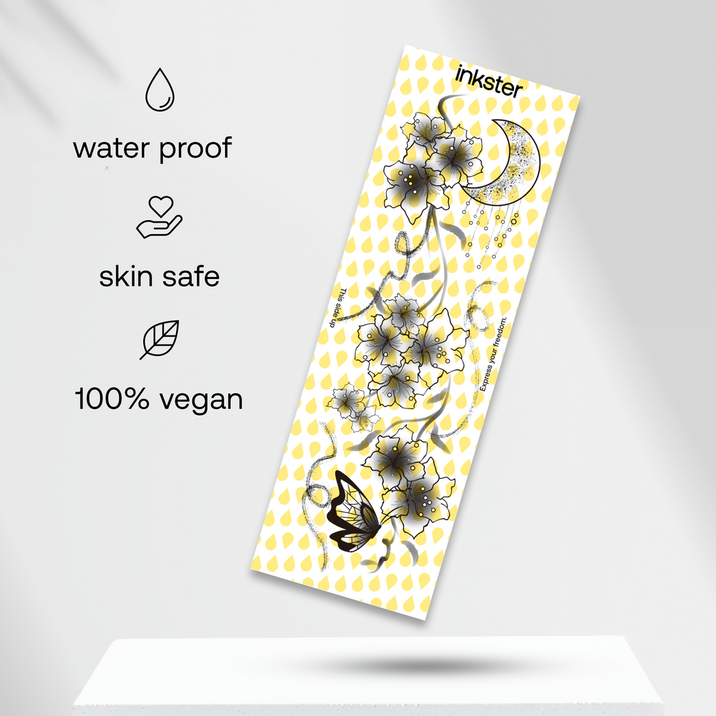 Onze natuurlijke Inkster-inkt wordt opgenomen in de eerste huidlaag en reageert met natuurlijke componenten in je huid en in de lucht, waardoor het zwart of blauw wordt.