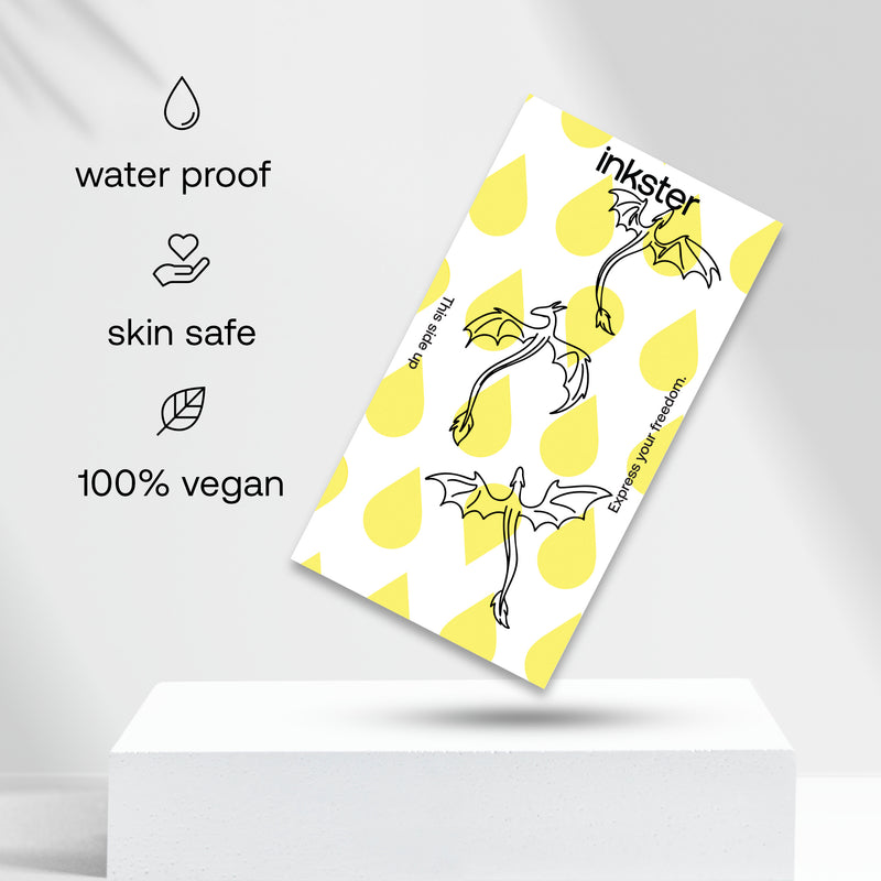 De Kleine draken Tatoeages is meer dan alleen een stijlvol ontwerp – het is een krachtig symbool van kracht, transformatie en fantasie. In veel culturen wordt de draak gezien als beschermer, geluksbrenger of spiritueel wezen. Hij staat voor moed, wijsheid en de verbinding tussen hemel en aarde. Een kleine draak tatoeage is een subtiele maar expressieve manier om deze mystieke energie op je huid te dragen. Of het nu een teken is van je innerlijke kracht of een ode aan je liefde voor mythen – deze tatoeage is een diepzinnig en persoonlijk statement. Perfecte plaatsing voor jouw stijl Kleine draken tatoeages zijn prachtig te dragen op veel verschillende plekken – fijn achter het oor, elegant op de pols of speels bij de enkel. Door het compacte formaat passen ze perfect op subtiele plekken en stralen ze toch kracht en karakter uit. Ook op de schouder, het sleutelbeen of in de nek komen ze mystiek tot hun recht. Wil je een geheime touch? Draag de tatoeage op een verborgen plek – alleen voor jou zichtbaar. Veelzijdig combineerbaar – van casual tot chic Of je nu gaat voor een casual outfit met een T-shirt en jeans of een vrouwelijke look met een zomerjurkje – de Kleine draken tatoeages trekt altijd de aandacht. Als tijdelijke tatoeage past het bij elke stijl en benadrukt het je persoonlijkheid op een creatieve manier. Vooral bij evenementen, festivals of op vakantie is het een echte blikvanger. Dankzij het kleine formaat is het een flexibel accessoire dat je steeds weer anders kunt dragen. Voor dromers, avonturiers en sterke persoonlijkheden Deze tatoeage is perfect voor iedereen die van draken houdt – of het nu gaat om hun mythologische betekenis of hun fascinerende uitstraling. Ideaal voor wie nog twijfelt over een permanente tatoeage en het eerst wil uitproberen. Ook voor fans van fantasy, oosterse symboliek of spirituele thema’s biedt de Kleine draken tatoeages een geweldige manier om jouw waarden en interesses te tonen. Of je nu artistiek, spiritueel of fantasierijk bent – deze tatoeage spreekt een breed publiek aan. Ontdek je innerlijke draak Laat je inspireren door de energie en magie van de Kleine draken tatoeages. Het is meer dan alleen een motief – het is een tijdelijk symbool van jouw kracht, vrijheid en individualiteit. Laat de wereld zien wie je bent – met een unieke tatoeage van Inkster. Bestel nu jouw tijdelijke Inkster-tatoeage en voel de mystieke kracht van de draak op je huid!