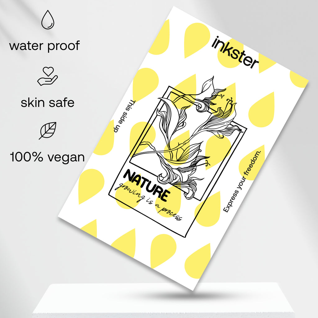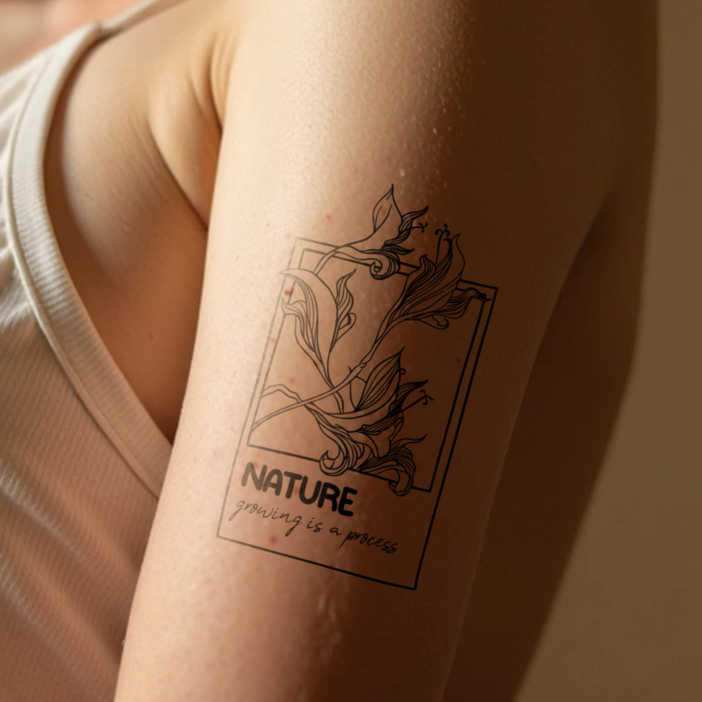 Het "Nature growing is a process" - Polaroid tatoeage is veel meer dan een simpel ontwerp – het is een krachtig symbool van de voortdurende groei en de schoonheid van de natuur. Dit ontwerp weerspiegelt de evolutie en het wonder van natuurlijke processen, vastgelegd in de visuele kracht van een Polaroid-foto. Het symboliseert de onophoudelijke beweging van het leven, de ontwikkeling van onze omgeving en de waarde van tijd en herinneringen. Het Polaroid-ontwerp fungeert niet alleen als een eerbetoon aan het verleden, maar ook als een herinnering aan de constante transformatie die alles om ons heen doormaakt. De Symboliek van het "Nature growing is a process" - Polaroid tatoeage Het "Nature growing is a process" tatoeage is een eerbetoon aan de natuurlijke processen die de wereld om ons heen vormen. Het laat ons zien hoe alles – van kleine zaadjes tot gigantische bomen – altijd in beweging is en groeit. Het Polaroid-ontwerp is een symbool van het vastleggen van momenten in de tijd, terwijl het de voortdurende veranderingen in ons leven benadrukt. Het herinnert ons eraan dat alles, inclusief onszelf, zich voortdurend ontwikkelt en transformeert, en dat deze groei een essentieel onderdeel is van ons bestaan. Plaatsing van het "Nature growing is a process" - Polaroid tatoeage Dit tatoeageontwerp is flexibel in plaatsing en kan worden aangepast aan je persoonlijke voorkeuren en stijl. Het werkt goed op grotere oppervlakken zoals de bovenarm of de rug, waar het ontwerp in al zijn schoonheid zichtbaar kan zijn. Voor wie een subtielere uitstraling wil, kan het tatoeage ook op kleinere plekken zoals de pols of achter het oor worden geplaatst. Dit ontwerp kan zelfs discreet worden gedragen op verborgen plekken, zodat het alleen voor jezelf zichtbaar is, als een persoonlijke herinnering aan de kracht van groei. Stijl en Veelzijdigheid van het "Nature growing is a process" - Polaroid tatoeage Het "Nature growing is a process" tatoeage is veelzijdig en past perfect bij verschillende outfits en gelegenheden. Het accentueert een moderne, minimalistische stijl wanneer het gedragen wordt met een eenvoudig t-shirt en jeans. Voor een elegantere uitstraling kan het tatoeage goed worden gecombineerd met een luchtige jurk of een stijlvolle blouse. Het tatoeageontwerp is ideaal voor speciale evenementen of vakanties, waar het een uniek accent toevoegt aan je stijl. Het Polaroid-ontwerp is een flexibele toevoeging die bij elke gelegenheid gedragen kan worden. Voor Wie Is het "Nature growing is a process" - Polaroid tatoeage Geschikt? Het "Nature growing is a process" tatoeage is geschikt voor iedereen die de schoonheid van natuurlijke processen en de voortdurende evolutie van het leven wil symboliseren. Het spreekt mensen aan die de waarde van tijd, verandering en groei in hun eigen leven begrijpen. Of je nu een creatieve geest bent, een natuurliefhebber, of iemand die de schoonheid van transformatie waardeert, dit ontwerp zal zeker resoneren. Het is perfect voor diegenen die de constanten van verandering omarmen en de groei die we als individuen en als samenleving doormaken willen vastleggen. Ontdek de Betekenis van Groei met het "Nature growing is a process" - Polaroid tatoeage Het "Nature growing is a process" - Polaroid tatoeage is een tijdelijke tattoo die je individualiteit en de essentie van voortdurende verandering benadrukt. Het laat zien hoe je verbonden bent met de natuur en de processen van evolutie die alles om je heen vormen. Draag dit tatoeage met trots en laat het deel uitmaken van je levensstijl. Met dit ontwerp kun je je band met de natuur en de groei die ons allen beïnvloedt zichtbaar maken. Bestel nu je tijdelijke Inkster-tattoo en ervaar de diepere betekenis van de voortdurende groei van de natuur.