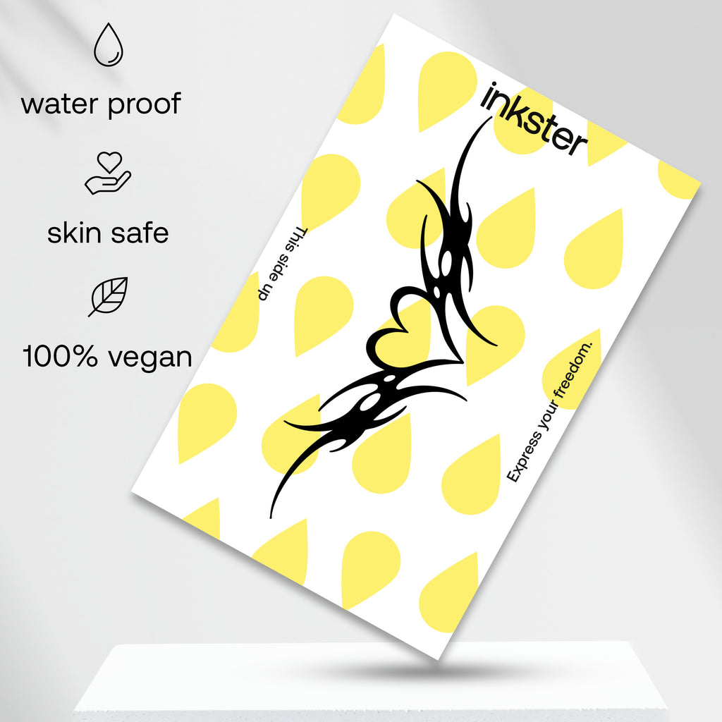 Het Onderrug hart Tatoeage is meer dan alleen een gedurfd ontwerp – het is een krachtige uiting van individualiteit, vrijheid en zelfvertrouwen. Het hart symboliseert liefde, passie en emotie, terwijl de plaatsing op de onderrug – vaak speels en rebels – staat voor onafhankelijkheid en het lef om buiten de lijntjes te kleuren. Dit tatouage verenigt twee sterke symbolen die zowel liefde als zelfverwezenlijking vertegenwoordigen. Het herinnert ons eraan dat we ons eigen verhaal mogen schrijven, zonder concessies aan verwachtingen van anderen. Of je het nu draagt met een knipoog, als teken van eigenzinnigheid of als expressie van jouw unieke persoonlijkheid – het Onderrug hart Tatoeage is een opvallend en onvergetelijk statement. Plaatsing van het Onderrug hart Tatoeage De plaatsing van dit tatouage is essentieel voor de uitstraling. Klassiek wordt het op de onderrug gedragen, waar het een speelse en verleidelijke twist toevoegt aan je uitstraling. Maar ook op de heup, bovenbeen of schouderbladen komt dit ontwerp krachtig tot zijn recht, afhankelijk van hoe zichtbaar of persoonlijk je het wilt maken. Of je nu kiest voor de klassieke "tramp stamp"-stijl of een moderne interpretatie – dit tatouage accentueert jouw stijl op unieke wijze. Veelzijdigheid van het ontwerp Het Onderrug hart Tatoeage past zich moeiteloos aan aan verschillende stijlen. Combineer het met een casual outfit zoals jeans en een crop top voor een stoere look, of draag het met een zomerse jurk voor een elegante maar speelse uitstraling. Het ontwerp leent zich ook perfect voor festivals, stranddagen of momenten waarop je jouw vrijheid en zelfverzekerdheid wilt laten zien. Het is een stijlvol accent met een knipoog, geschikt voor elk karakter. Voor wie is dit tatouage geschikt? Dit tatouage is ideaal voor iedereen die zichzelf wil laten zien – zoals die écht is. Het spreekt mensen aan die zich niet laten beperken door conventies en die hun eigen schoonheid willen definiëren. Of je nu een creatieve geest bent, een vrijdenker of gewoon zin hebt in iets rebels – het Onderrug hart Tatoeage is voor mensen die zichzelf vieren, op hun eigen voorwaarden. Vier jezelf met het Onderrug hart Tatoeage Laat zien waar je voor staat: liefde, lef en vrijheid. Het Onderrug hart Tatoeage van Inkster is meer dan een tijdelijk sieraad – het is een speelse maar betekenisvolle manier om jouw persoonlijkheid te onderstrepen. Bestel vandaag nog jouw tijdelijke Inkster-tattoo en ervaar hoe dit bijzondere ontwerp jouw stijl compleet maakt.