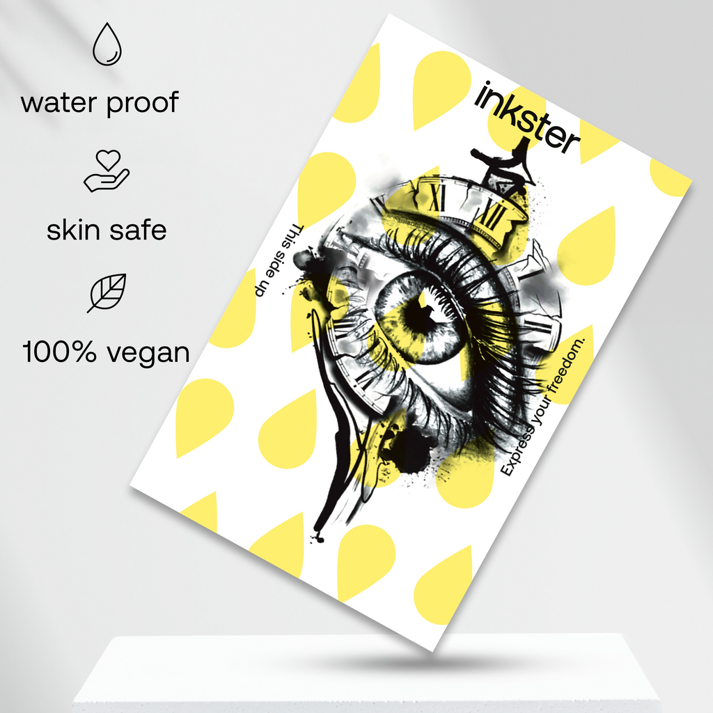 Unsere natürliche Inkster Tinte zieht in die erste Hautschicht ein und reagiert mit natürlichen Verbindungen in der Haut und der Luft, wodurch sie sich schwarz/blau färbt.