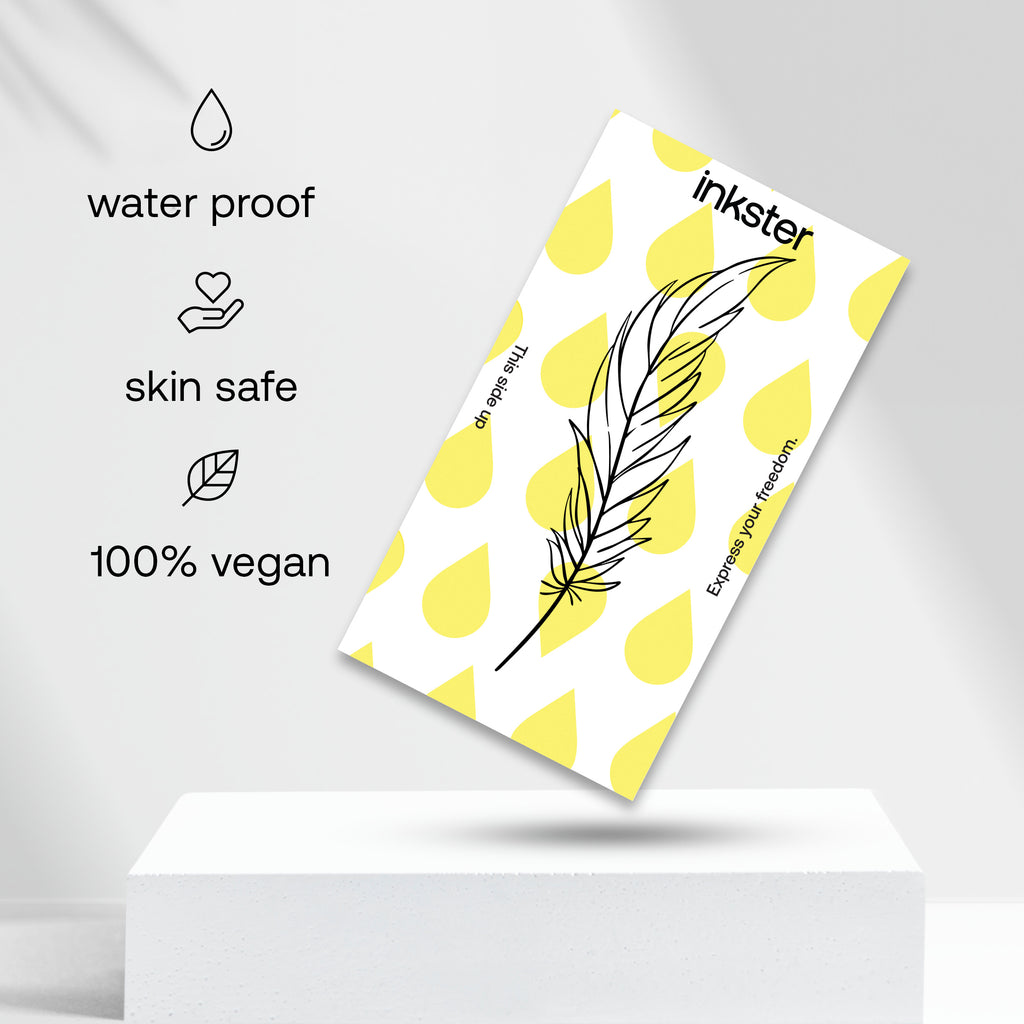 De Simpele veer Tatoeage is meer dan slechts een verfijnd ontwerp – het is een symbool van vrijheid, lichtheid en innerlijke kracht. De veer staat van oudsher voor spiritualiteit, transformatie en het loslaten van ballast. Ze herinnert ons eraan om in het moment te leven, trouw te blijven aan onszelf en open te staan voor verandering. Of je nu geïnspireerd bent door de natuur, spirituele overtuigingen of een persoonlijke ervaring – de Simpele veer Tatoeage draagt een tijdloze en diepzinnige betekenis in zich. De plaatsing van de Simpele veer Tatoeage is net zo individueel als de symboliek ervan. Op grotere oppervlakken zoals de dij of de onderarm komt de elegante vorm prachtig tot zijn recht. Wie het liever subtiel houdt, kan de veer op de enkel, het sleutelbeen of achter het oor dragen – als een fijn detail dat alleen bij nader inzien zichtbaar is. Ook op intiemere plekken kan de tatoeage een persoonlijk geheim zijn – eentje dat alleen jij kent. De stijl van de Simpele veer Tatoeage is minimalistisch en toch expressief. Het laat zich moeiteloos combineren met allerlei looks – van een casual dagelijkse outfit met jeans en sneakers tot een romantische zomerjurk of een boho-geïnspireerde festivalstijl. Op vakantie, op het strand of bij speciale gelegenheden trekt het de aandacht als een stijlvol accent dat jouw persoonlijkheid onderstreept. De veer past zich aan elke stijl aan – en geeft die een bijzondere, luchtige touch. De Simpele veer Tatoeage is perfect voor iedereen die een teken van vrijheid en zelfontplooiing wil uitdragen. Het is ideaal voor mensen die bewust kiezen voor een niet-permanente tattoo of hun verbinding met de natuur en spiritualiteit willen tonen – zonder zich ergens aan vast te leggen. Voor yogi’s kan de veer herinneren aan de zoektocht naar innerlijke balans, voor reizigers aan het verlangen naar onafhankelijkheid. Of je nu een dromer bent, een avonturier of een minimalist – deze tattoo spreekt vele zielen aan. Beleef de betekenis van lichtheid met de Simpele veer Tatoeage van Inkster. Een tijdelijke tattoo die je herinnert aan wat echt belangrijk is: vrijheid, verandering en authenticiteit. Laat je stijl zien, benadruk je karakter en draag het symbool van de veer met trots. Bestel nu je tijdelijke Inkster-tattoo en laat de boodschap van lichtheid tot leven komen op je huid.