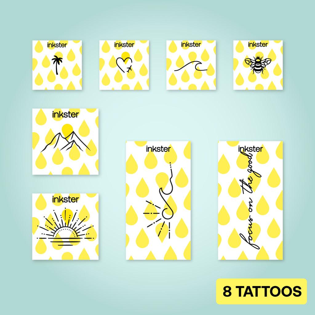 Het Zonneschijn Tattoo Bundel is een veelzijdige en betekenisvolle set tijdelijke tatoeages die de kracht en schoonheid van de zon symboliseren. Het bevat meerdere tatoeages met een vergelijkbaar thema, zodat je verschillende plaatsingen kunt uitproberen of ze zelfs met je vrienden kunt delen. De inspiratie voor dit bundel ligt in de diepe betekenis en emotionele impact van het zonneschijn motief. De zon staat symbolisch voor licht, energie en levensvreugde. Het kan ook een verbinding hebben met culturele wortels of historische referenties. Wat je verhaal of persoonlijke betekenis ook is die je met de zon verbindt, dit tatoeage bundel stelt je in staat om je eigen interpretatie uit te drukken en je individuele stijl te benadrukken. Als het gaat om de plaatsing van het Zonneschijn Tattoo Bundel, zijn er geen grenzen voor je. Het is perfect voor grotere oppervlakken zoals de rug, om een indrukwekkende en expressieve look te bereiken. Tegelijkertijd kun je de tatoeages ook op kleinere, subtielere plaatsen zoals polsen of enkels dragen om subtiele accenten te leggen. De diversiteit van het bundel stelt je in staat om verschillende ontwerpen op verschillende plaatsen uit te proberen en je lichaam als canvas te gebruiken. Stylingtips voor het Zonneschijn Tattoo Bundel? De mogelijkheden zijn eindeloos! Je kunt de tatoeage gebruiken als veelzijdig accessoire dat bij elke outfit past. Draag het bij sportevenementen om je passie en energie te tonen, of tijdens het dansen om je look een vleugje zonneschijn te geven. Zelfs tijdens vakanties wordt het Zonneschijn Tattoo Bundel een perfecte metgezel om je zonnige stemming en avontuurlust uit te drukken. Deze tijdelijke tatoeage is ideaal voor jongeren die ervoor kiezen om geen permanente tatoeages te nemen of die een tatoeage willen testen zonder zich op lange termijn te hoeven vastleggen. Het is ook een geweldige optie voor evenementen of belangengroepen die de zon als symbool willen gebruiken. Of je nu een zonliefhebber bent, een buitenliefhebber of gewoon de positieve vibes van de zon in je leven wilt brengen - het Zonneschijn Tattoo Bundel is voor jou gemaakt. Met het Zonneschijn Tattoo Bundel van Inkster kun je je zonnigste kant laten zien en je individualiteit en creativiteit tot uiting brengen. Laat de zon in je leven en geniet van de vreugde die het verspreidt - met deze tijdelijke tatoeageset die je tot twee weken zal vergezellen. Wees uniek, wees stralend, wees jezelf met het Zonneschijn Tattoo Bundel van Inkster.