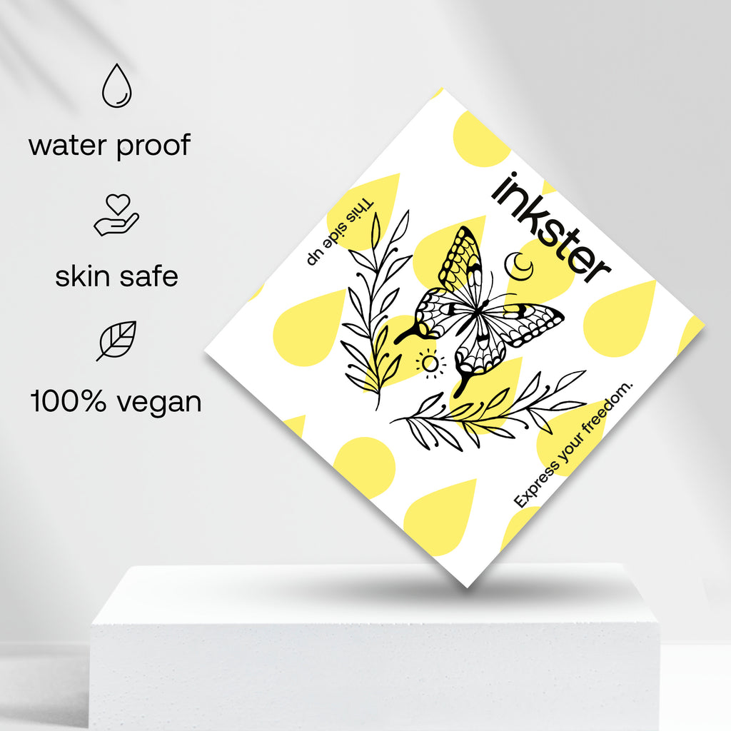 Onze natuurlijke Inkster-inkt wordt opgenomen in de eerste huidlaag en reageert met natuurlijke componenten in je huid en in de lucht, waardoor het zwart of blauw wordt.