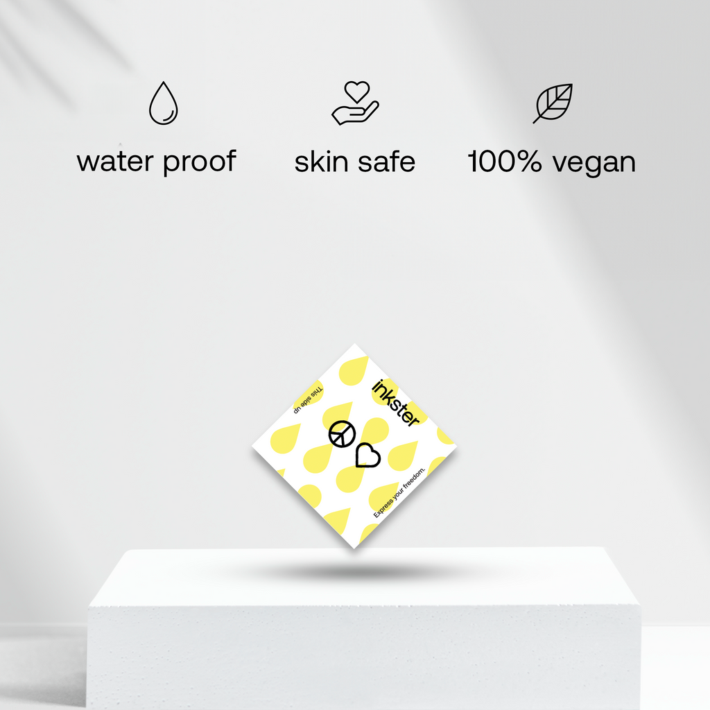 Het tijdelijke tattoo Peace-teken met hart van Inkster is niet alleen een modieus accessoire, maar ook een symbool met diepe betekenis. Het Peace-teken staat voor vrede en harmonie, terwijl het hart bekend staat als symbool van liefde en genegenheid. Samen belichamen ze een boodschap van liefde en vrede die we allemaal in de wereld willen verspreiden. De plaatsing van het tattoo hangt af van jouw persoonlijke stijl en voorkeuren. Voor grotere oppervlakken zoals de buik of de rug kan het Peace-teken met hart dienen als eyecatcher. Als je echter een subtiel statement wilt maken, zijn kleinere plekken zoals de nek of de voet perfect geschikt. Er zijn veel stylingtips voor het tattoo Peace-teken met hart! Je kunt het combineren met verschillende outfits om jouw persoonlijke stijl tot uiting te brengen. Draag het bij sportevenementen om je steun voor vrede te tonen, of style het met een casual outfit voor een ontspannen dagje winkelen. Het tattoo past ook perfect bij een strandvakantie en geeft jouw bikini of strandjurk net dat beetje extra. Het tattoo Peace-teken met hart is geschikt voor mensen die een tijdelijk alternatief voor permanente tatoeages zoeken. Het is ideaal voor jonge mensen die hun individuele stijl willen uiten zonder zich voor de lange termijn te binden. Het is ook een geweldige optie voor evenementen zoals festivals, concerten of feestjes waar je jouw persoonlijkheid wilt laten zien. Inkster biedt hoogwaardige tijdelijke tattoos die gemakkelijk aan te brengen en te verwijderen zijn. Het Peace-teken met hart is een van onze meest populaire ontwerpen en zal zeker opvallen, waar je het ook draagt. Met een duurzaamheid van maximaal twee weken kun je het gemakkelijk in jouw dagelijks leven integreren en verschillende looks uitproberen. Ontdek nu het tijdelijke tattoo Peace-teken met hart van Inkster en laat jouw persoonlijkheid stralen. Toon de wereld jouw boodschap van vrede en liefde zonder je voor de lange termijn te binden. Bestel nu jouw eigen Inkster-tattoo en maak deel uit van de tijdelijke tattoo-beweging!
