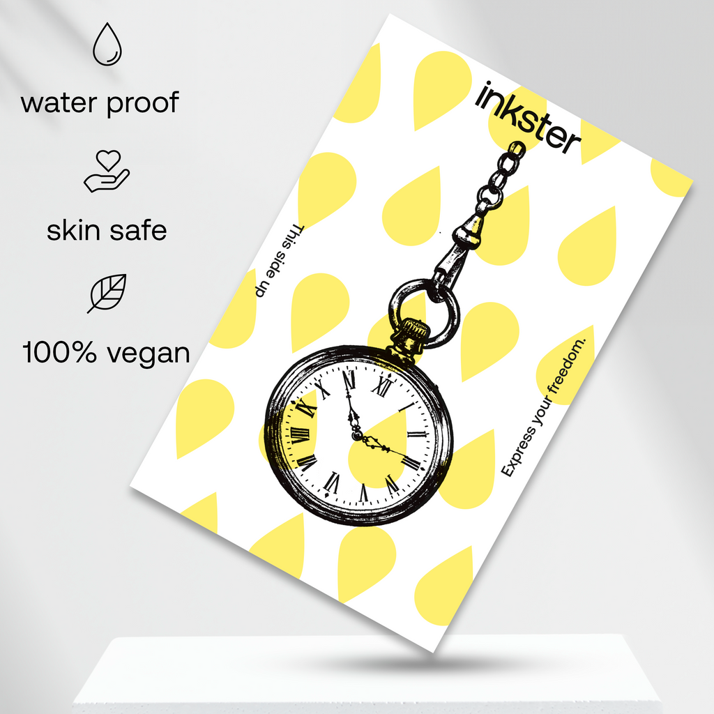 Unsere natürliche Inkster Tinte zieht in die erste Hautschicht ein und reagiert mit natürlichen Verbindungen in der Haut und der Luft, wodurch sie sich schwarz/blau färbt.